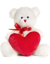 Weißer Bär mit roter Schleife und Nase